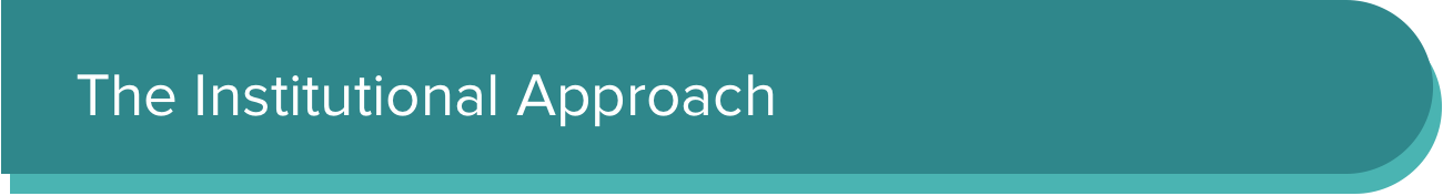The institutional approach emphasizes the process and the needs of the institutions. It is presented in clear steps and starts at the top of the hierarchy (top-down).