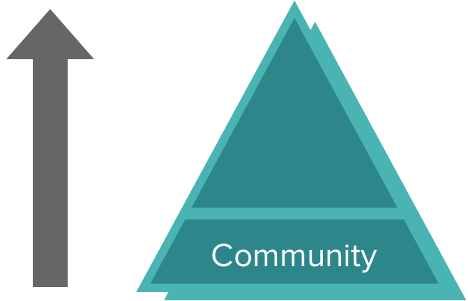 The role of institutions in this approach is to serve and meet the needs of the community, rather than the opposite. It’s not what the institutions want, but what the community wants (bottom-up).